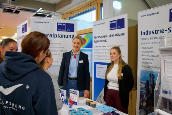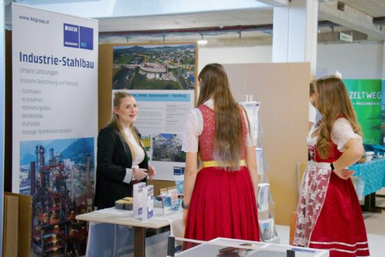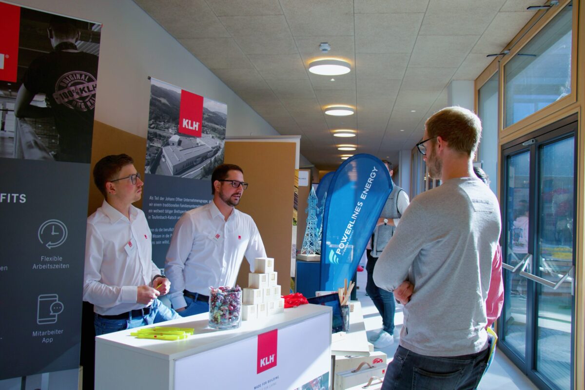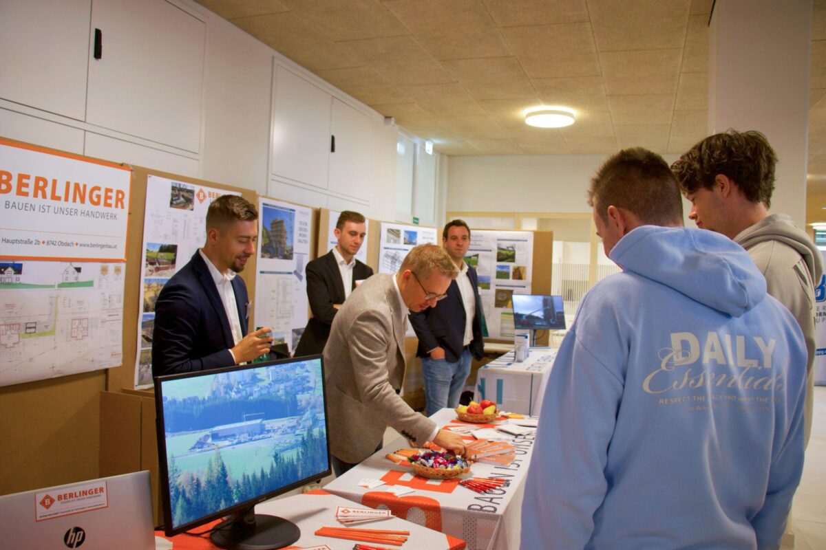 Zahlreiche Unternehmen aus Industrie, Technik und Bauwesen nutzten die Gelegenheit, sich den Schüler:innen der Abteilungen Smart Engineering / Maschinenbau, Bautechnik sowie Bautechnik mit Vertiefung Ingenieurholzbau vorzustellen und über Karrierechancen, Ferialpraktika und Diplomarbeiten zu informieren.